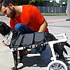 Samsun'da trafik kazası sonucu arka ayakları felç olan köpeğe sahip çıkan 2 arkadaş, yürüteçle yürüttükleri köpeğe şefkat göstererek örnek davranışta bulundu.
