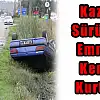 Samsun'da yoldan çıkıp su kanalına uçarak ters dönen otomobilin sürücüsü taktığı emniyet kemeri sayesinde kazayı yara almadan atlattı