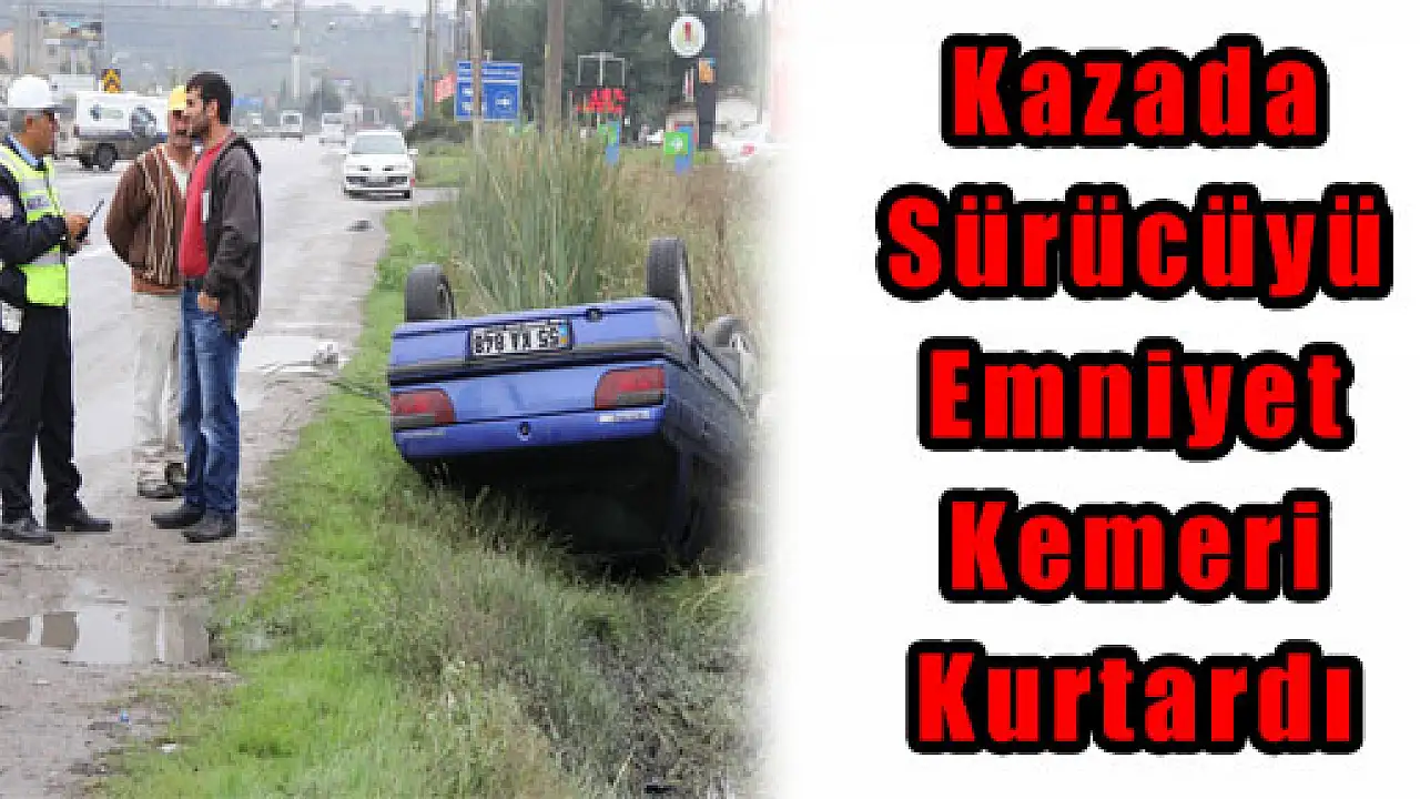 Kaza, İlkadım ilçesi Derecik Mahallesi Samsun-Ankara Karayolu üzerinde meydana geldi. Edinilen bilgiye göre, Adem Yetim (36) idaresindeki 55 KA 848 plakalı otomobil, muayene istasyonundan dönerken önündeki otomobilin aniden fren yapması üzerine direksiyon hakimiyetini kaybederek yolun kenarındaki su kanalına uçup ders döndü. Sürücü Adem Yetim, emniyet kemeri takılı olduğu için kazayı yara almadan atlattı. Otomobilin arka sol kapısının penceresinden dışarı çıkan Adem Yetim, kendisini emniyet kemerinin kurtardığını söyledi.