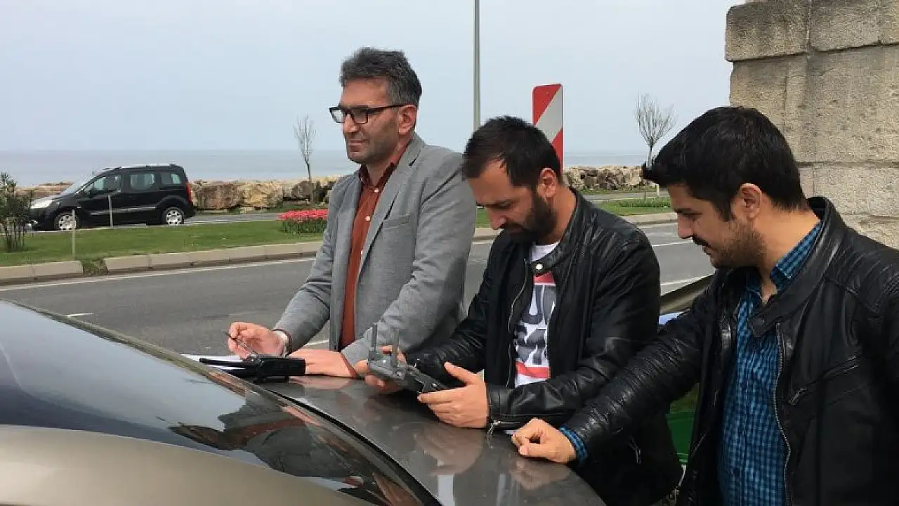 Ordu'nun Fatsa ilçesi Bolaman Bölge Trafik İstasyon Amirliği ekipleri Samsun-Ordu Karayolu Ilıca kavşağında Drone ile emniyet kemeri , kırmızı ışık ve direksiyonda cep telefonu uygulaması yapıyor