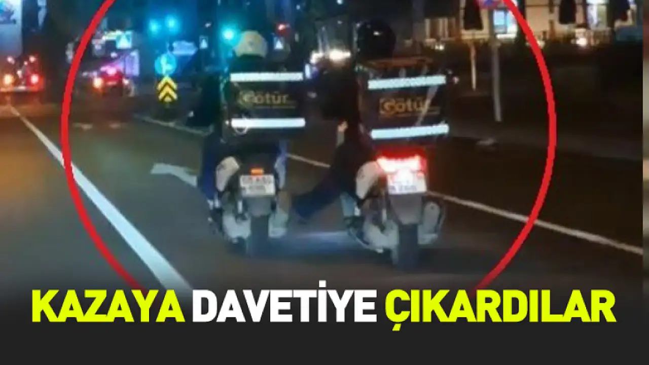 Samsun'da motosiklet sürücüsü seyir halindeyken ayağıyla başka bir motosikleti iterek kazaya davetiye çıkardı.