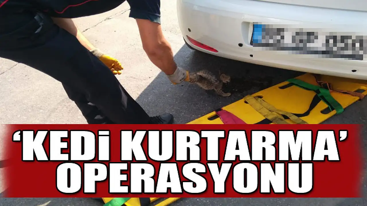 Çarşamba'da park halindeki aracın arka tampon kısmına girerek sıkışan yavru kedi, itfaiye ekipleri tarafından kurtarıldı.