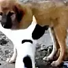 Gaziantep'te kedi ve köpeğin ilginç oyunu cep telefonu kameralarına yansıdı