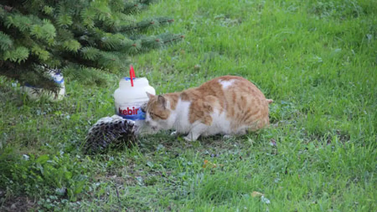 Samsun'da sokak kedisinin zeytin keyfi görenleri şaşırttı.