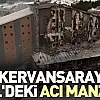 Alevlere teslim olan Kervansaray Otel'deki acı manzara, gün ağırınca dron ile havadan görüntülendi.