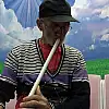 Kesik parmaklarıyla su borusundan yaptığı neyi çalıyor