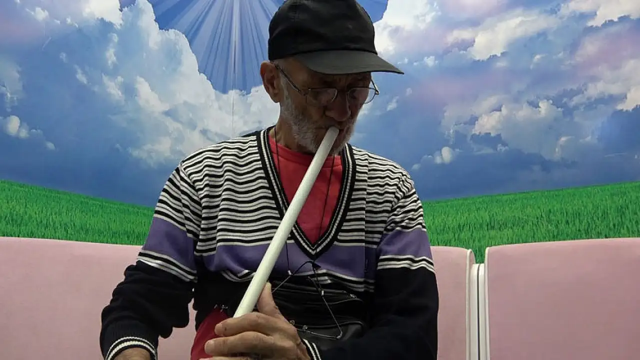 Samsun'un Havza ilçesinde Huzurevi ve Rehabilitasyon Merkezinde kalan Bayram Bat, su borusundan yaptığı ney ile huzurevi sakinlerine müzik ziyafeti veriyor.