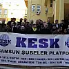 KESK Samsun Şubeler Platformu Dönem Sözcüsü Metin Erol, grup adına basın açıklaması okudu. Erol, "Eğitim ve sağlık alanı olmak üzere ekonomik ve sosyal haklarda oluşturulan tahribata dur demek, kazanımlarımızı korumak, ülkemizi tek parti diktatörlüğüne doğru sürüklemekte olan aşırı otoriter gidişata seyirci kalmamak için konfederasyonumuzun aldığı grev kararını uygulayan üyelerimize verilen cezalar kabul edilemez" dedi.