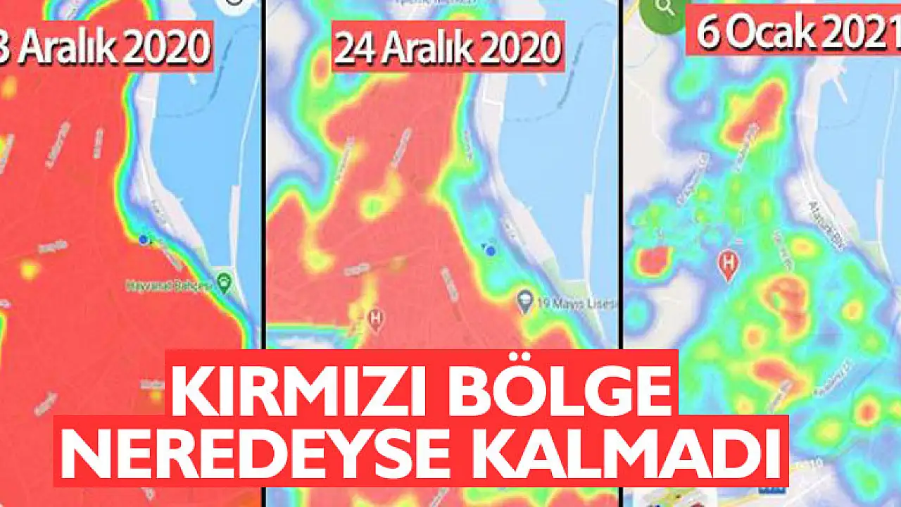 3 Aralık tarihinde risk haritasına bakıldığı zaman mezarlıkların dahi kırmızı renge büründüğü görülüyordu. Aradan geçen 3 haftalık zaman diliminden sonra 24 Aralık tarihinde harita incelendiği zaman risk yoğunluğundaki azalma gözle görülür hale gelmişti.