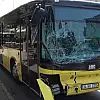 Kırmızı ışıkta geçen İETT otobüsünün çarptığı kamyonet devrildi