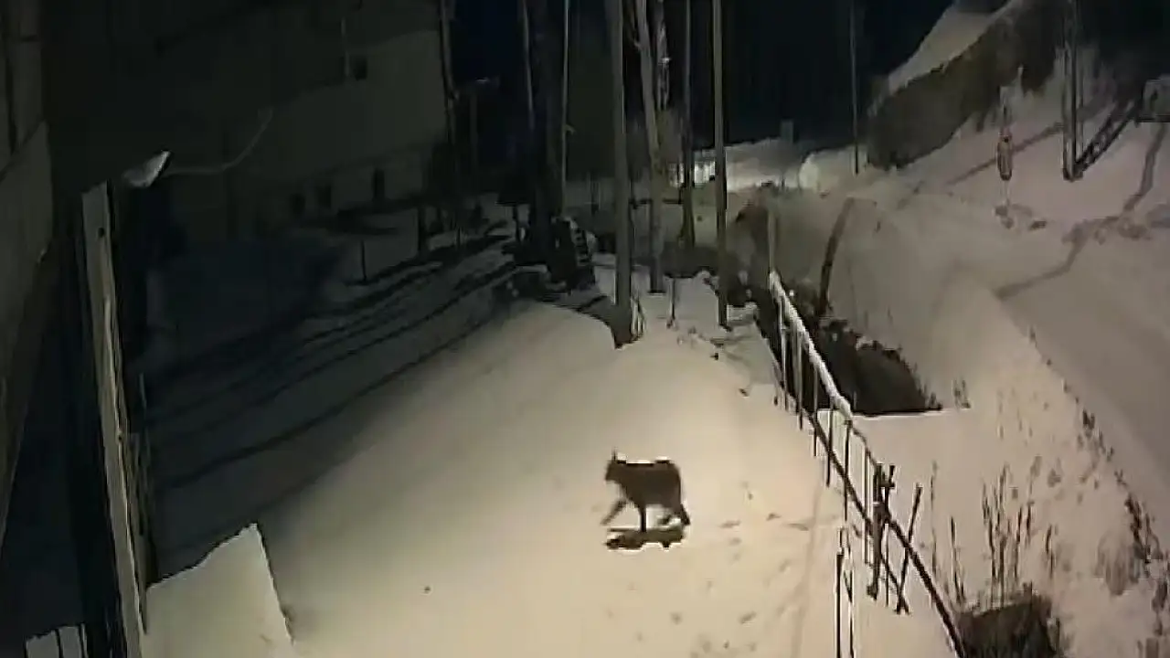 Kırmızı listedeki vaşak Bayburt'ta güvenlik kamerasına yansıdı