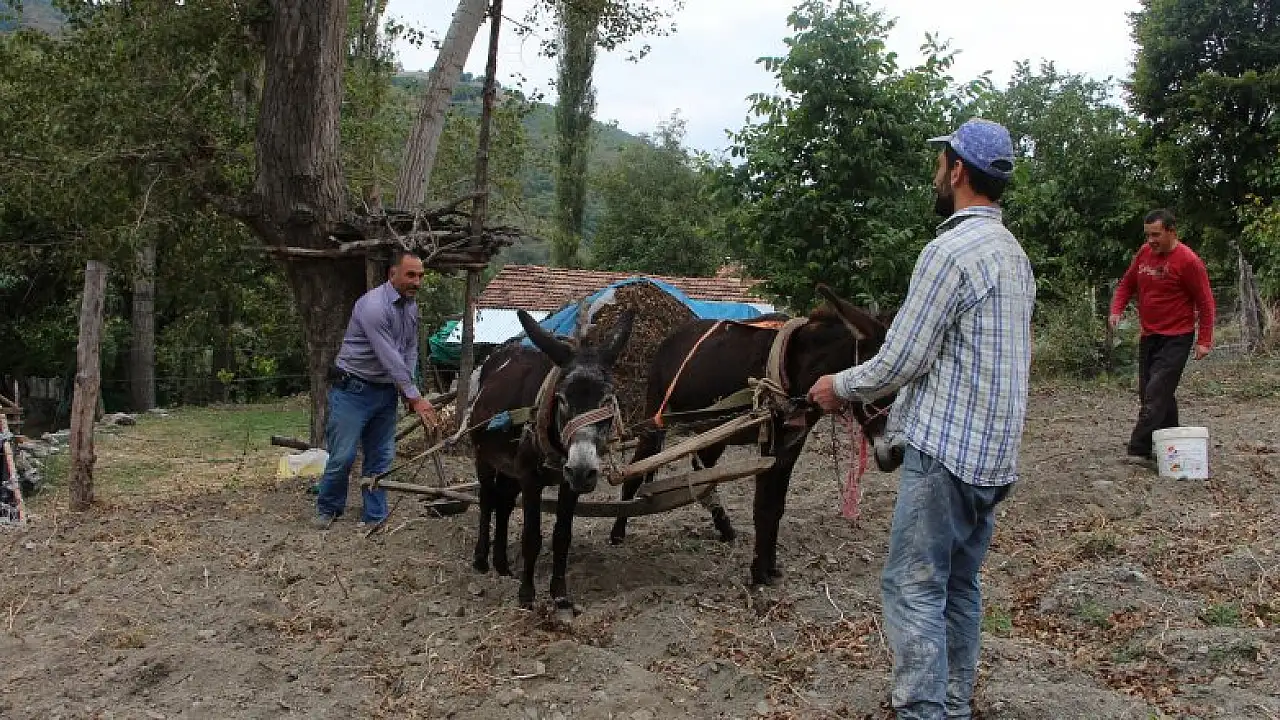 Samsun'un Vezirköprü ilçesinde bazı kırsal mahallelerde eşeklerin tarımda kullanımı arttı