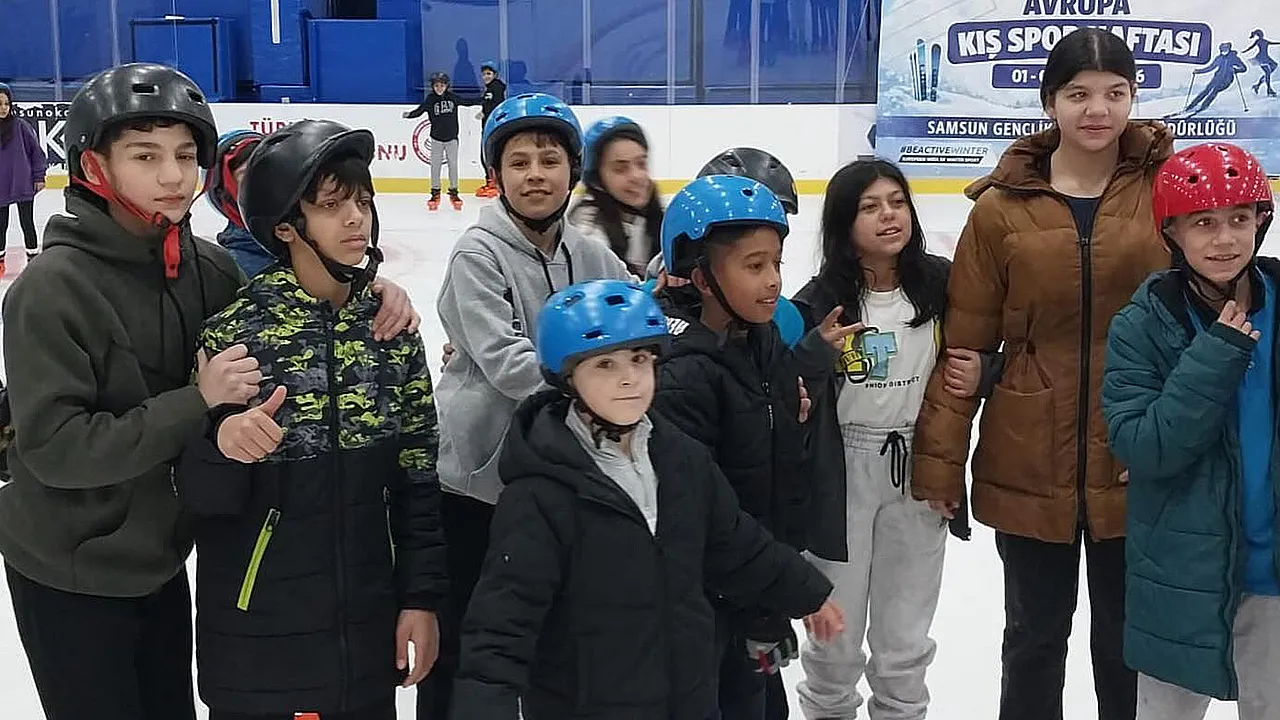Samsun'da aylık düzenli kitap okuyan öğrenciler buz patenine götürülerek ödüllendirildi.