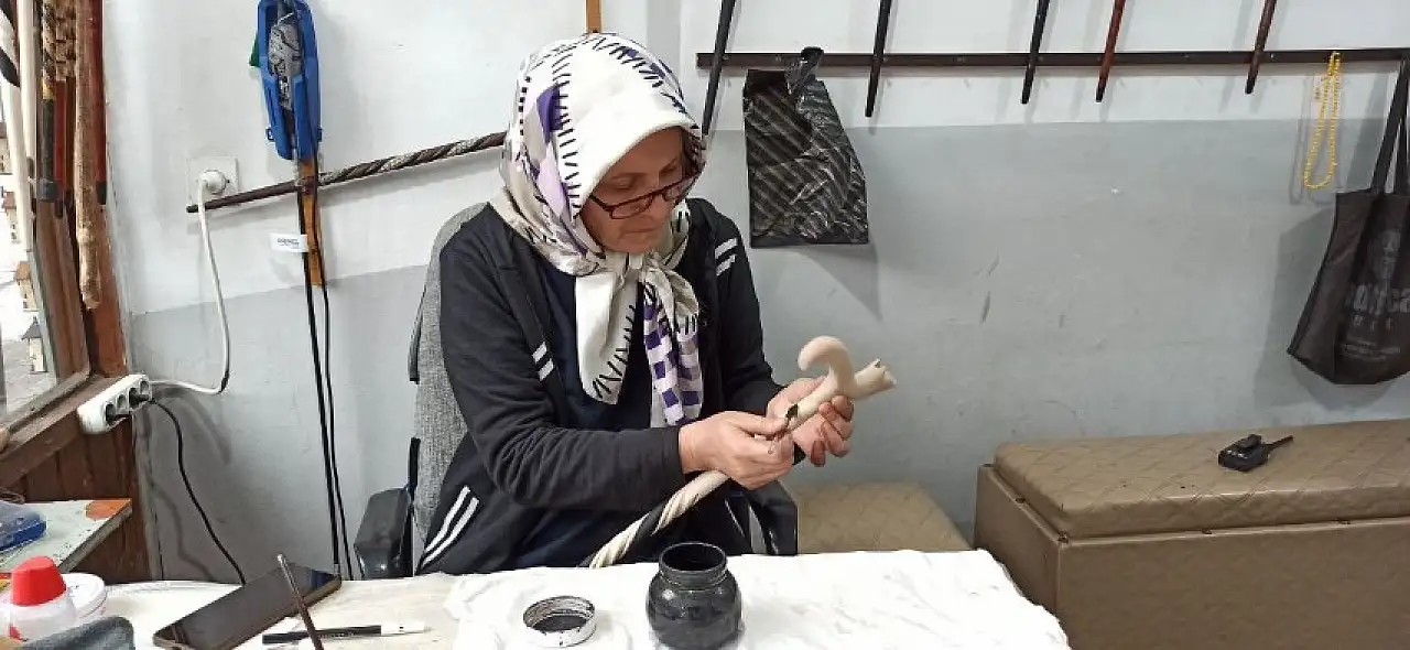 “Hem ev hanımlığı yapıyorum hem de eşime atölyede yardım ediyorum. Kendi çapımda usta oldum ama bu sanatın hak ettiği değeri gördüğünü düşünmüyorum. Oğlum var fakat açıkçası onun bu işi yapmasını istemiyorum. Çünkü sektör ilerlemiyor. Oysa bu bastonlar Cumhurbaşkanımız aracılığıyla dünyanın birçok ülkesindeki devlet adamlarına hediye ediliyor. Türkiye’nin ve dünyanın dört bir yanında kullanılıyor.”
