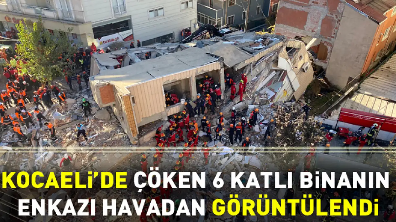 Kocaeli'de çöken 6 katlı binanın enkazı havadan görüntülendi
