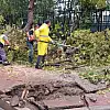 Samsun'da etkili olan sağanak yağış dolayısıyla adliye önündeki bir ağaç kaldırıma devrildi.