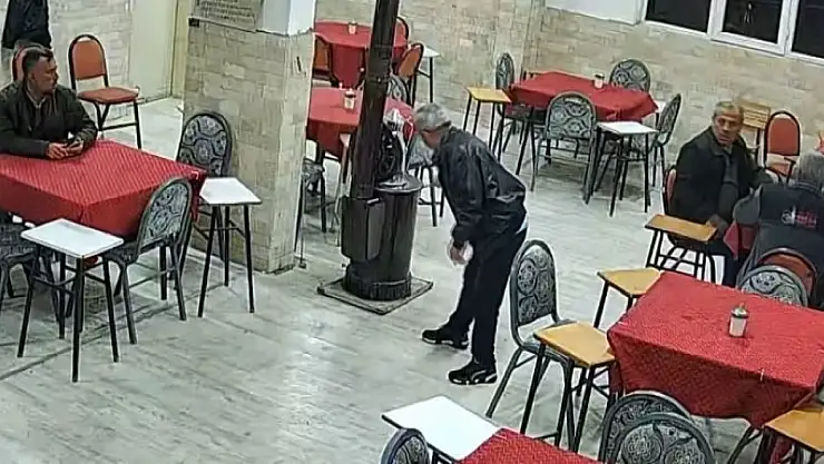 Güvenlik kamerasına yansıyan görüntülerde, sobanın adeta bomba gibi patlayarak devrildiği, patlamaya neden olan fikri veren vatandaşın panikle kaçtığı görülürken, sobanın hemen yanındaki masada oturan 4 kişinin kısa süreli şok yaşamalarına rağmen yerlerinden kalkmadıkları anlar dikkat çekti.