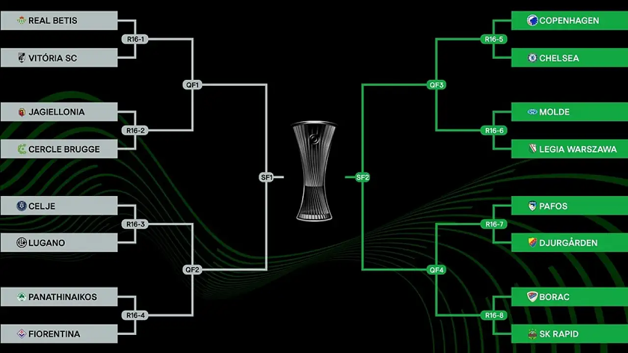 UEFA Konferans Ligi son 16 turu ilk maçları 6 Mart, rövanşları ise 13 Mart tarihlerinde oynanacak.