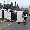 Bilecik'te seyir halinde kontrolden çıkan otomobil orta refüje çarparak devrildi