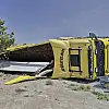 Kontrolden çıkan tır devrildi