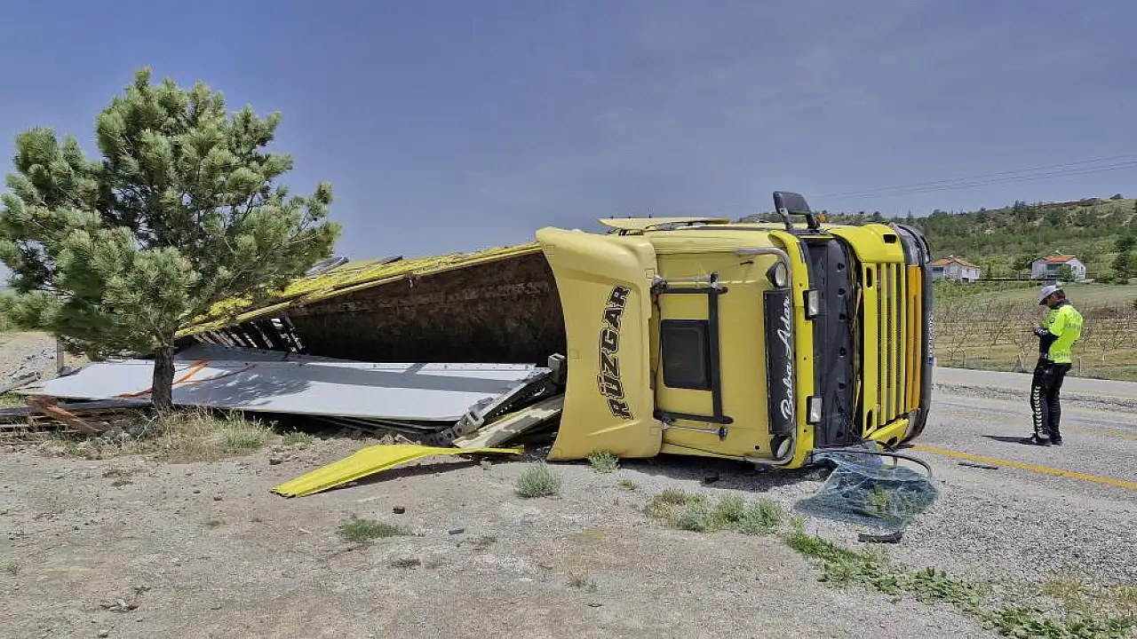 Karaman'da kontrolden çıkan tırın yol kenarına devrilmesi sonucu sürücüsü yaralandı.