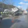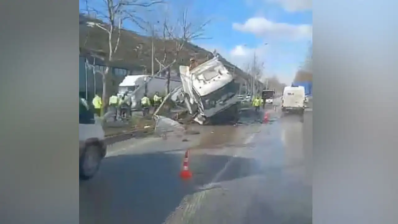 Bursa'da buzlanma nedeniyle kontrolden çıkan tır, refüje saplandı.