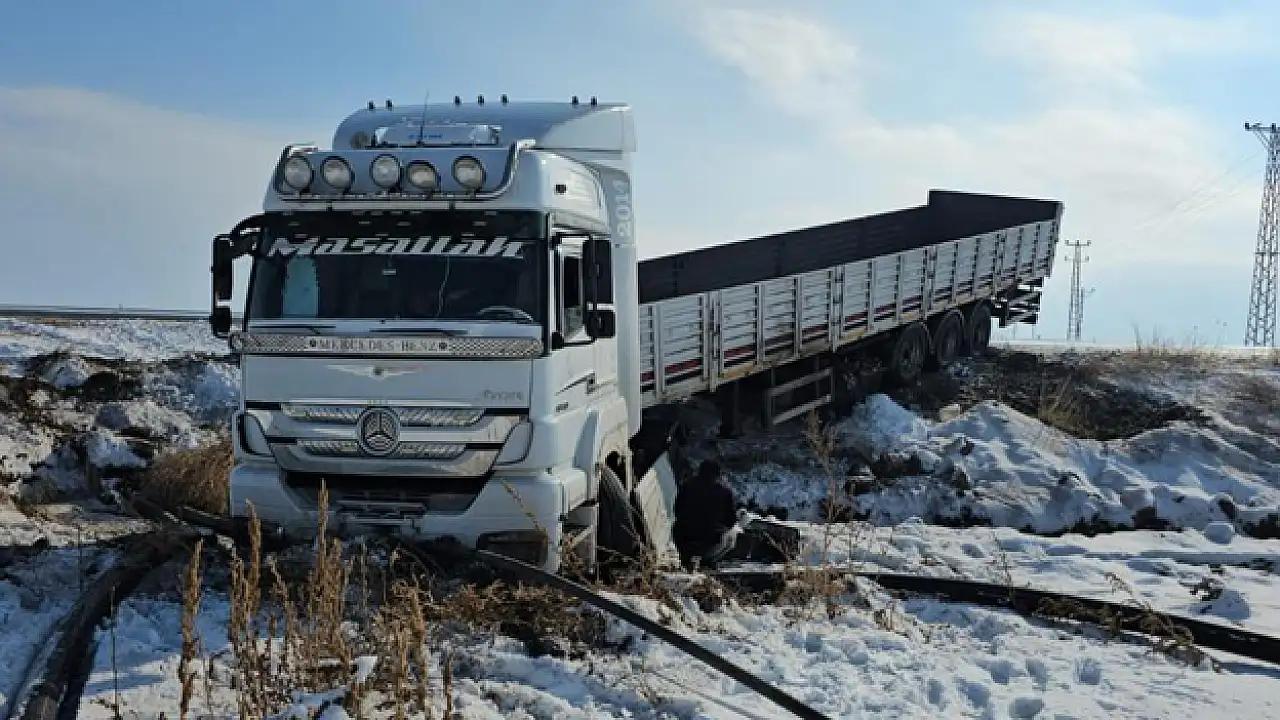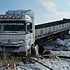 Bitlis'de kaygan yolda kontrolden çıkan tır şarampole düştü.