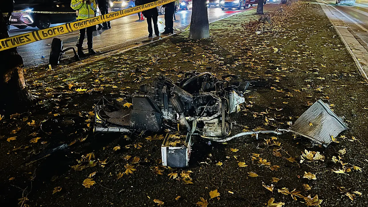 Kontrolden çıkıp ağaca çarpan otomobil alev aldı: 1'i ağır 2 yaralı
