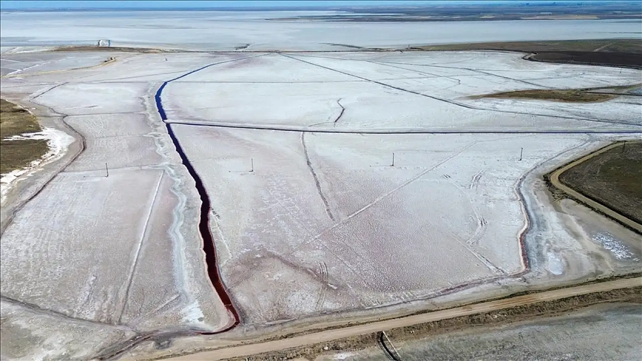 Konya'da kuruyan göllerden geriye tuz tabakası kaldı
