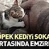 köpek kediyi sokak ortasında emzirdi