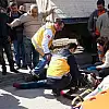 Bursa'nın Orhangazi ilçesinde, köpekten kaçarken korkarak yola fırlayan kadın, kamyonun altında kaldı.