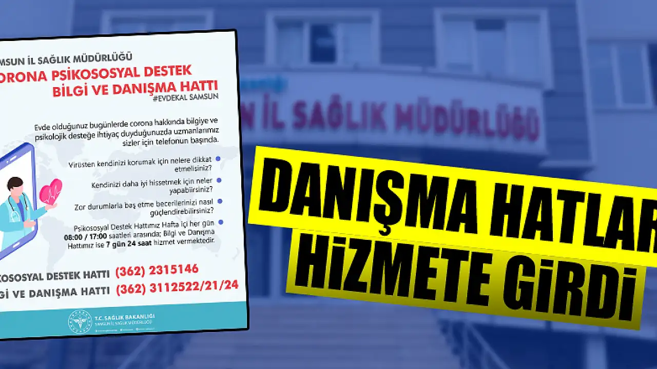 Sağlık Bakanlığı tarafından korona virüsü belirtileri gösterdiklerinden şüphelenen kişilerin araması için kurulan ALO 184 Korona Danışma Hattı'na destek olması için faaliyete geçirilen hatlardan, Korona Psikososyal Destek Hattı 0 (362) 231 51 46 numarasından hafta içi her gün 08.00-17.00 saatleri arasında; Korona Bilgi ve Danışma Hattı ise 0 (362) 311 25 21 / 22 / 24 numaralarından haftanın 7 günü 24 saat süresince Samsunlulara ve bölge insanına hizmet verecek.