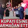 Salıpazarı Beldiyesporun başarılı futbolcusu Mehmet Aydoğdu şampiyonluk kupasını eşine hediye etti.