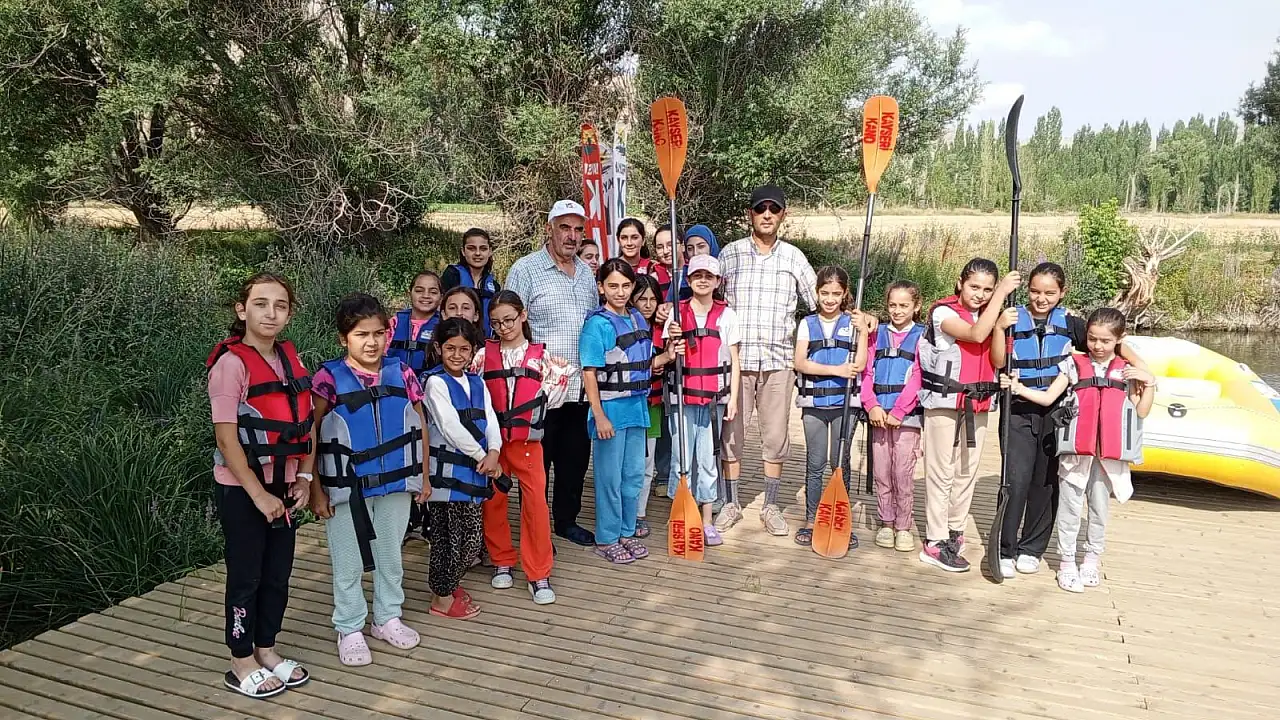 Kayseri'nin Tomarza ilçesinde Yaz Kuran Kursları'nın bitmesine sayılı günler kala öğrenciler kanoya bindi.
