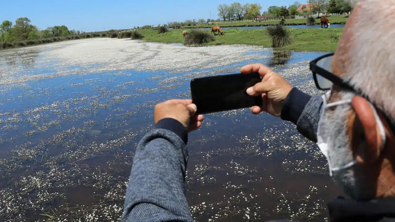 Türkiye'de var olan 486 kuş türünün 359'una ev sahipliği yapan Kızılırmak Deltası Kuş Cenneti, 554 bitki, 35 balık, 42 memeli hayvan, 260 omurgasız, 13 sürüngen ve 12 amfibi türüne yaşam alanı sağlıyor. Uçsuz bucaksız göller ve sazlıkların yer aldığı Kuş Cenneti, su basar ormanlarla da dikkat çekiyor. Bitki çeşitliliğinin oldukça fazla olduğu Kuş Cenneti'nde ilkbahar ile birlikte renk cümbüşü oluştu. Tabiatın tüm renklerini sunan deltada kartpostallık görüntüler ortaya çıktı. Deltada sulak alanlarda büyüyen 'su papatyaları' adeta gelinliği andırdı. Sulak alanları beyaza bürüyen papatyalar, görenlere doyumsuz seyir keyfi yaşattı. Eşsiz güzellik, drone ile havadan görüntülendi.