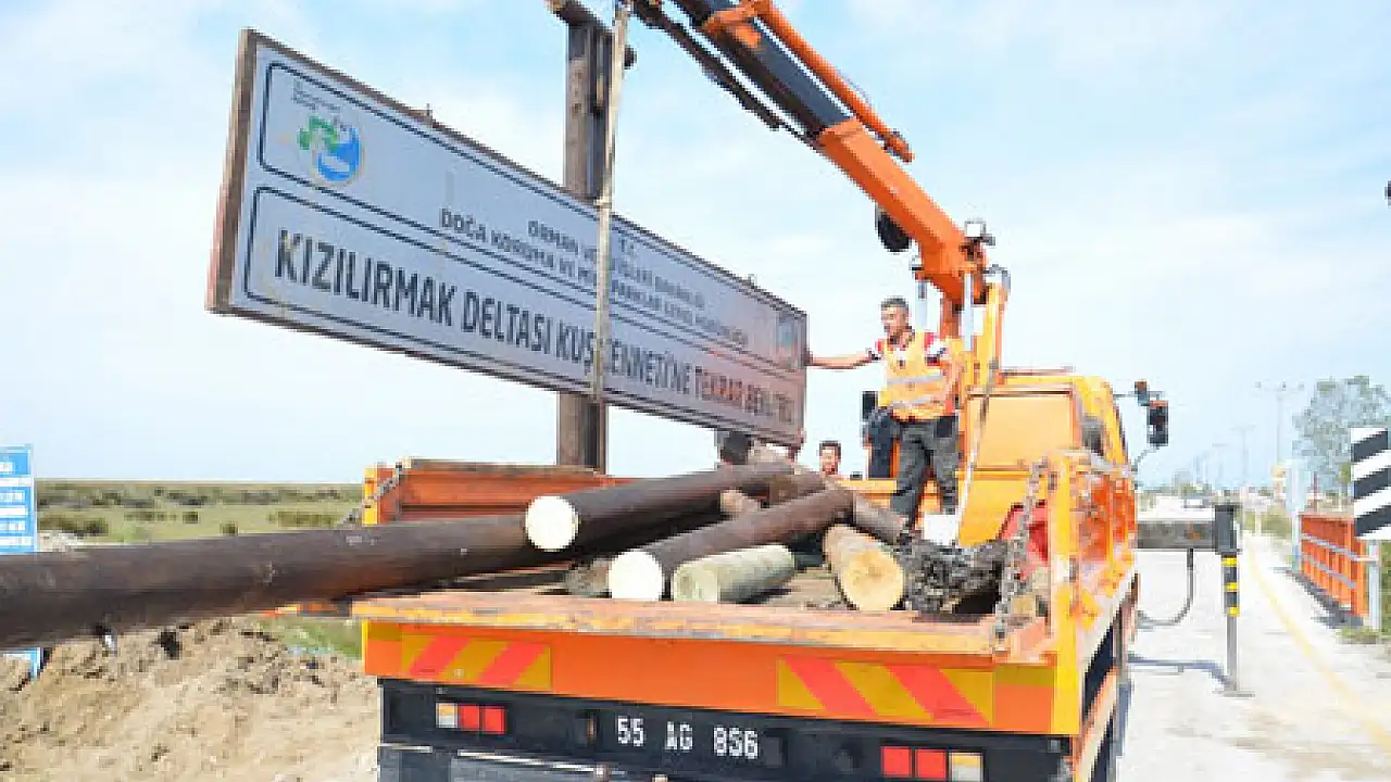 19 Mayıs ilçesi tarafından gidilen deltanın girişine dün Büyükşehir Belediyesi ekiplerince bir tarafına “Kızılırmak Deltası Kuş Cenneti’ne Hoş Geldiniz”, diğer tarafına “Kızılırmak Deltası Kuş Cenneti'ne Yine Bekleriz” yazılı tabela asıldı. Tabela, gece henüz kimliği bilinmeyen kişi veya kişilerce yakıldı.