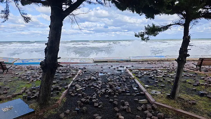 Dalgaların etkisiyle yürüyüş yolunda bulunan parke taşlarının yerinden söküldüğü, kaldırımların ise parçalandığı görüldü. Sahil hattında bazı bölgelerde dalga darbeleri nedeniyle ciddi tahribat oluştu.