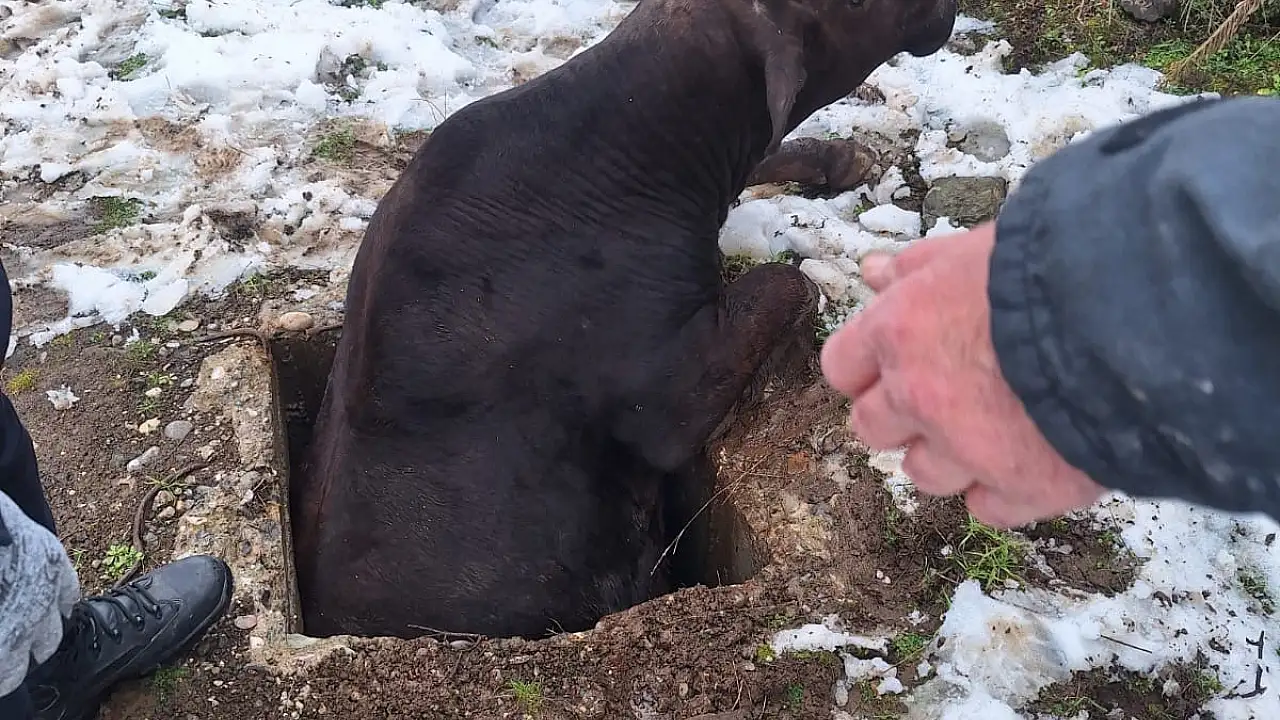 Tokat'ın Niksar ilçesinde kuyuya düşen inek, ekiplerin çalışmasıyla kurtarıldı.