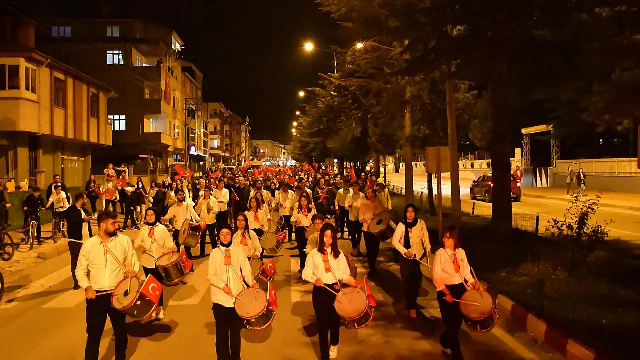 Samsun Caddesi'ni takip eden fener alayı Cumhuriyet Meydanı'nda sona erdi.