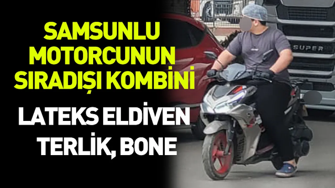Samsun'da kaskı, montu ve korumalı botlarıyla görmeye alışık olduğumuz motosikletlilerin aksine bir motorcu lateks eldiven, terlik ve bone üçlüsüyle yola çıktı. Güvenlik ekipmanlarını yeniden yorumlayan sürücü görenlere pes dedirtti.