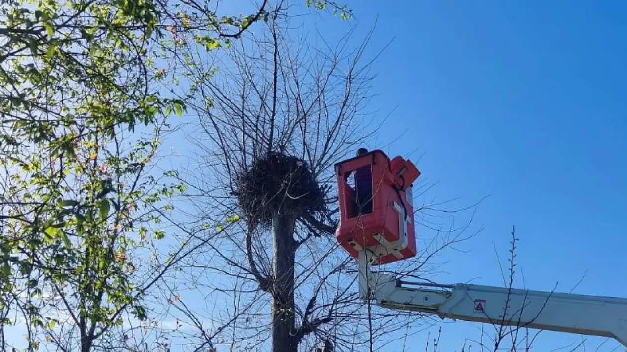 Öte yandan belediye ekipleri tarafından üzerinde yuva olan bölgedeki tüm ağaçların budaması da gerçekleştirildi.