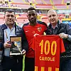 Adana Demirspor maçı öncesi Kayserispor Başkan Vekili Nurettin Açıkalın ve Genel Sekreter Rıza Erkut Yurdemi, Kayserispor formasıyla 100. maçına çıkan Lionel Carole’e forma ve plaket takdim etti.