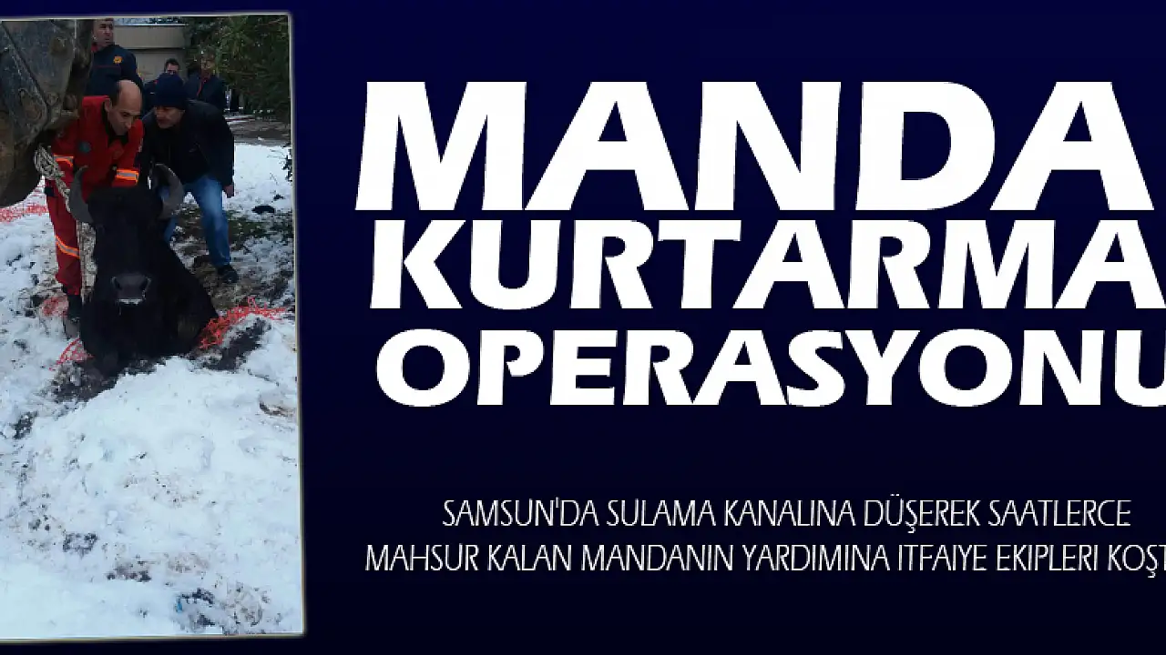 Samsun Ondokuz Mayıs Üniversitesi Kurupelit Kampüsünde gece saatlerinde sulama kanalına düştüğü tahmin edilen büyükbaş hayvan, görenleri hayrete düşürdü. Yüzlerce kilo ağırlığında olan ve saatlerce sulama kanalında mahsur kalan hayvan için, çevredekilerin ihbarı üzerine olay yerine Samsun Büyükşehir Belediyesi İtfaiye Daire Başkanlığına bağlı ekipler sevk edildi. Saatler süren çalışmalar sonucunda bir kepçe yardımıyla mandayı bulunduğu yerden çıkarmaya çalışan itfaiye ekipleri, ilk olarak mandanın bulunduğu yere inip, kepçeye mandayı bağladılar. Ardından yavaşça yukarıya çekilen manda, bulunduğu yerden kurtarıldı.