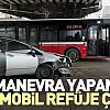 Samsun'da belediye otobüsüne çarpmamak için manevra yapan otomobil refüje çıktı
