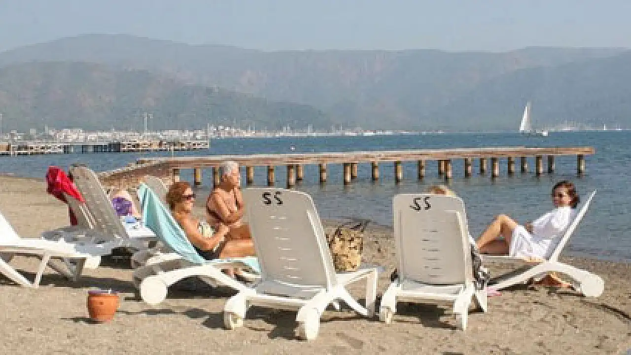 Tüm yurtta hava sıcaklıkları etkisini kaybederken önemli turizm merkezlerinde Marmaris'te sıcak hava etkisini göstermeye devam ediyor. Hava sıcaklığının hafta sonunda 25 derece ölçüldüğü ilçede turistler ve vatandaşlar plajlarda güneşlenerek deniz keyfi yaptı