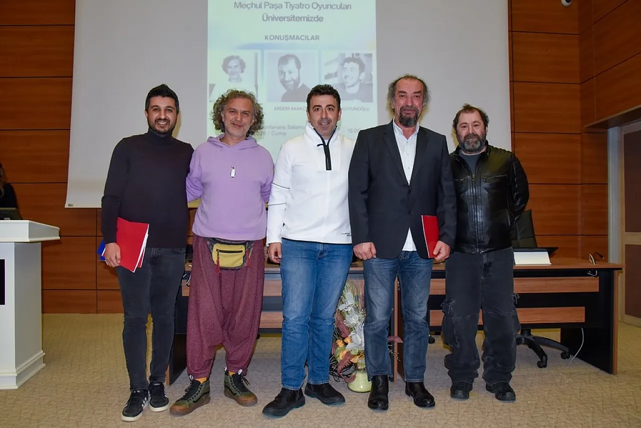 Ondokuz Mayıs Üniversitesi (OMÜ) Gençlik Topluluğu'nun düzenlediği 'Ders Arası Hikayeler' söyleşisi bu kez tiyatro dünyasının sevilen isimlerini ağırladı. 'Meçhul Paşa' oyununun oyuncuları Bülent Çolak, Erdem Akakçe ve Fatih Koyunoğlu öğrencilerle bir araya gelerek deneyimlerini paylaştı.