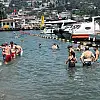 İstanbul'da son günlerde yükselen hava sıcaklıkları vatandaşlara zor anlar yaşatıyor. Termometreler 33 derece gösterirken, bunaltıcı havadan etkilenen vatandaşlar, Pazar gününü de fırsat bilerek İstanbul'un sahillerine akın etti. Mega kentin yoğun olan noktalarından Bebek Sahili'nde vatandaşlar denize girerek serinledi.
