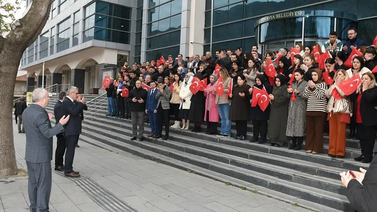 Belediye önünde ellerinde Türk bayraklarıyla toplanan yöneticiler ve çalışanlar saygı duruşunda bulunup İstiklal Marşı’nı seslendirdi. Ardından şehitler için dualar edildi. Amasya Belediye Başkanı Dr. Bayram Çelik, “Kahraman askerlerimize Allah’tan rahmet; ailelerine ve asil milletimize baş sağlığı diliyorum” dedi.
