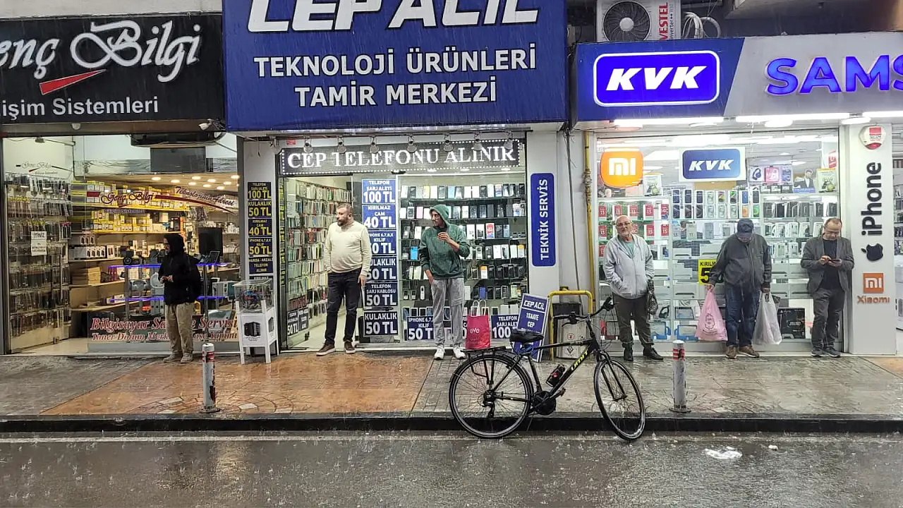 Öğle saatlerinde etkisini gösteren sağanak nedeniyle vatandaşlar yağmurdan korunmak için iş yerlerinin önlerine ve saçak altlarına sığındı. Yağışa hazırlıksız yakalanan bazı kişiler ise duraklarda bekleyerek yağmurun dinmesini bekledi.