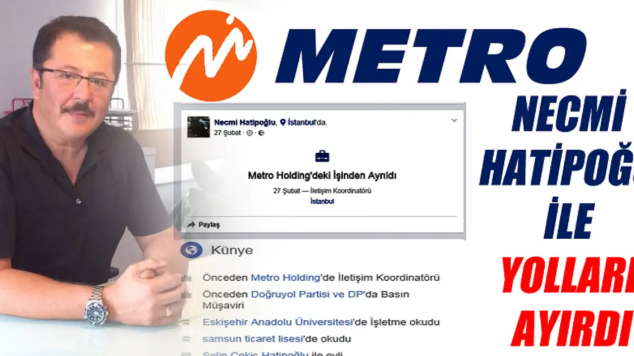 Mehmet Ağar’ın genel başkanlığını yaptığı dönemde Doğru Yol Partisi Basın Danışmanı olan Necmi Hatipoğlu, daha sonra METRO Holding A.Ş.’de Yönetim Kurulu Başkanı Samsun’lu İşadamı Galip Öztürk’ün Basın Danışmanı olarak göreve başlamıştı. Yıllardır bu görevi sürdüren Necmi Hatipoğlu ile Şubat ayında yolların ayrıldığı öğrenildi.